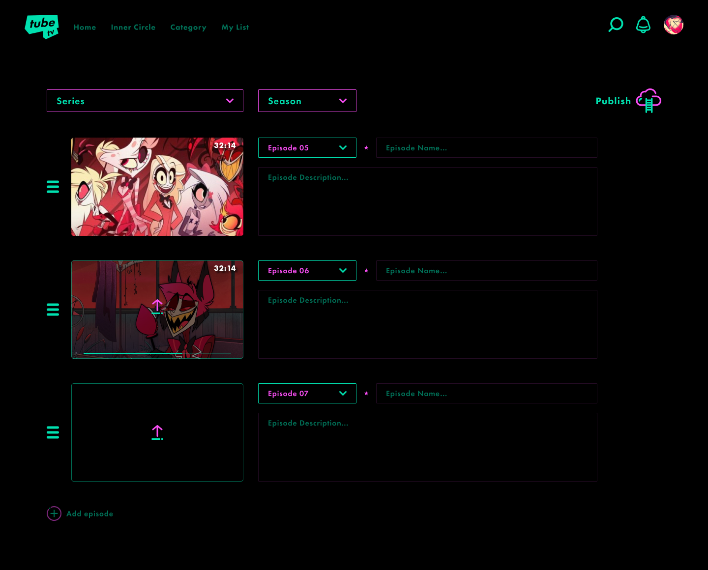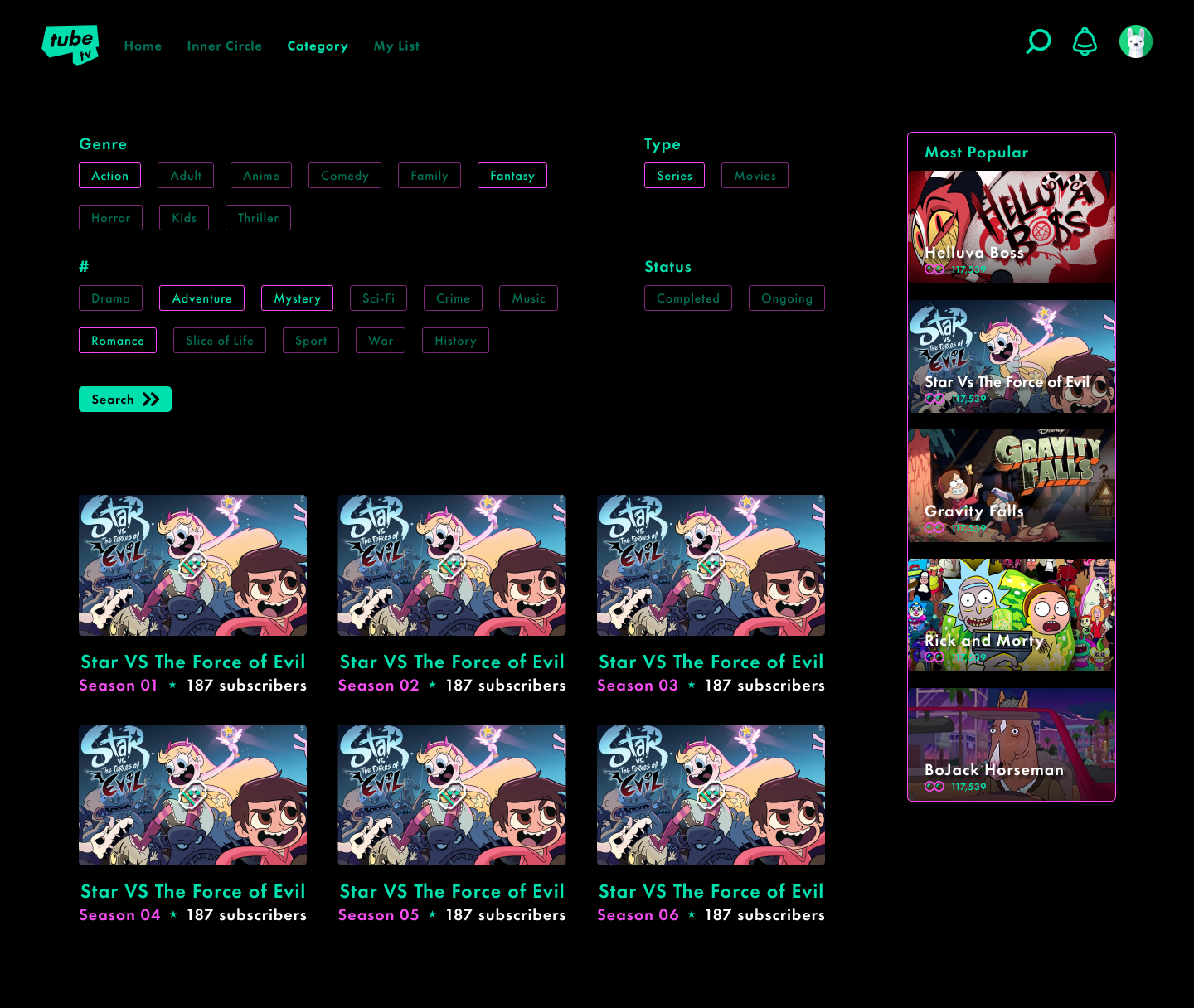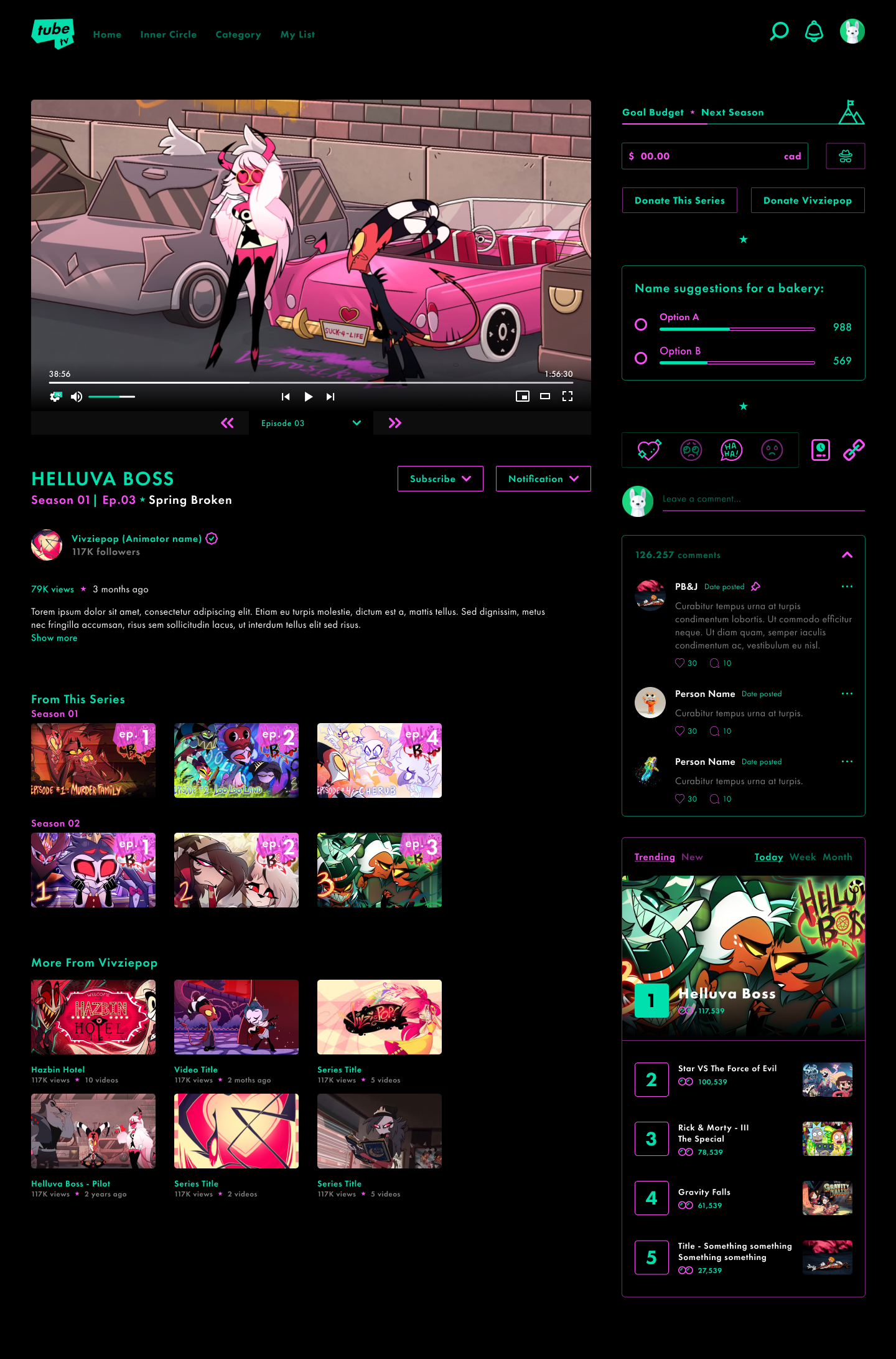 I curated the branding and UI/UX for TubeTV, infusing a playful yet futuristic aesthetic. The design creates a cinematic atmosphere, featuring a dark background with subtle elements that complement artists' work. Strategic use of neon pink and mint adds vibrancy without overshadowing, providing a dynamic, immersive platform that supports animators with a playful ambiance.